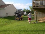 Album: August 8, 2004 Next on the agenda was the fencing in of the backyard in anticipation of the arrival of the newest member of the Dudas family. The fence will keep our dog in while keeping the neighbor dogs (and hoodlums) out hopefully. Heavy equipment was brought in to expedite the situation.