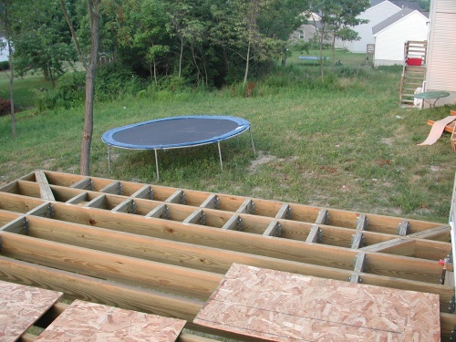Perimeter blocking along the outside edge of the deck.
