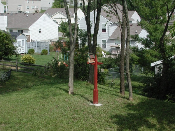View of bird feeder from deck.