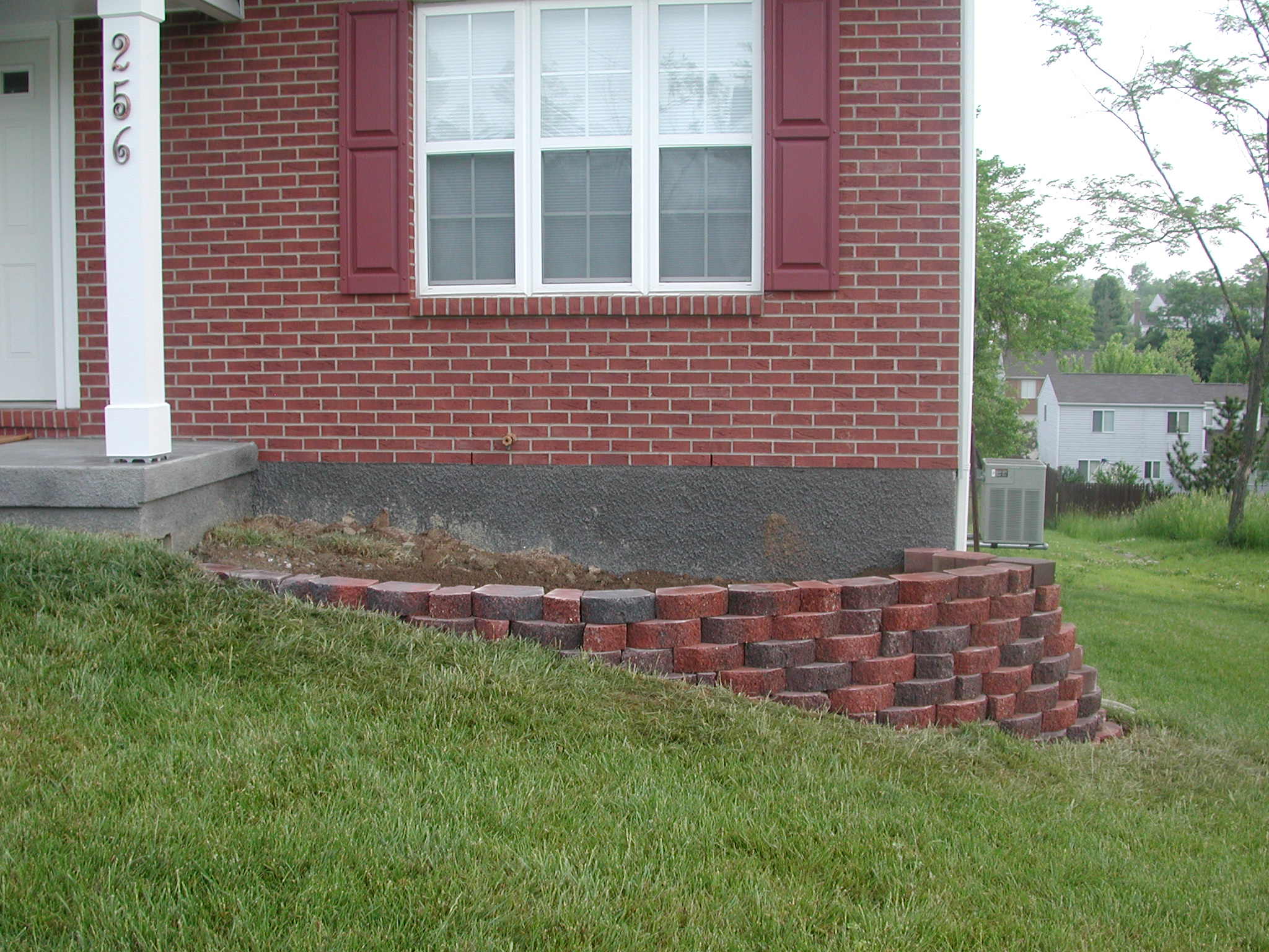 Front view of flower bed retaining wall