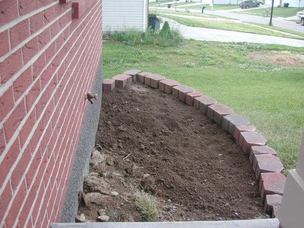 View of retaining wall flower bed from the porch