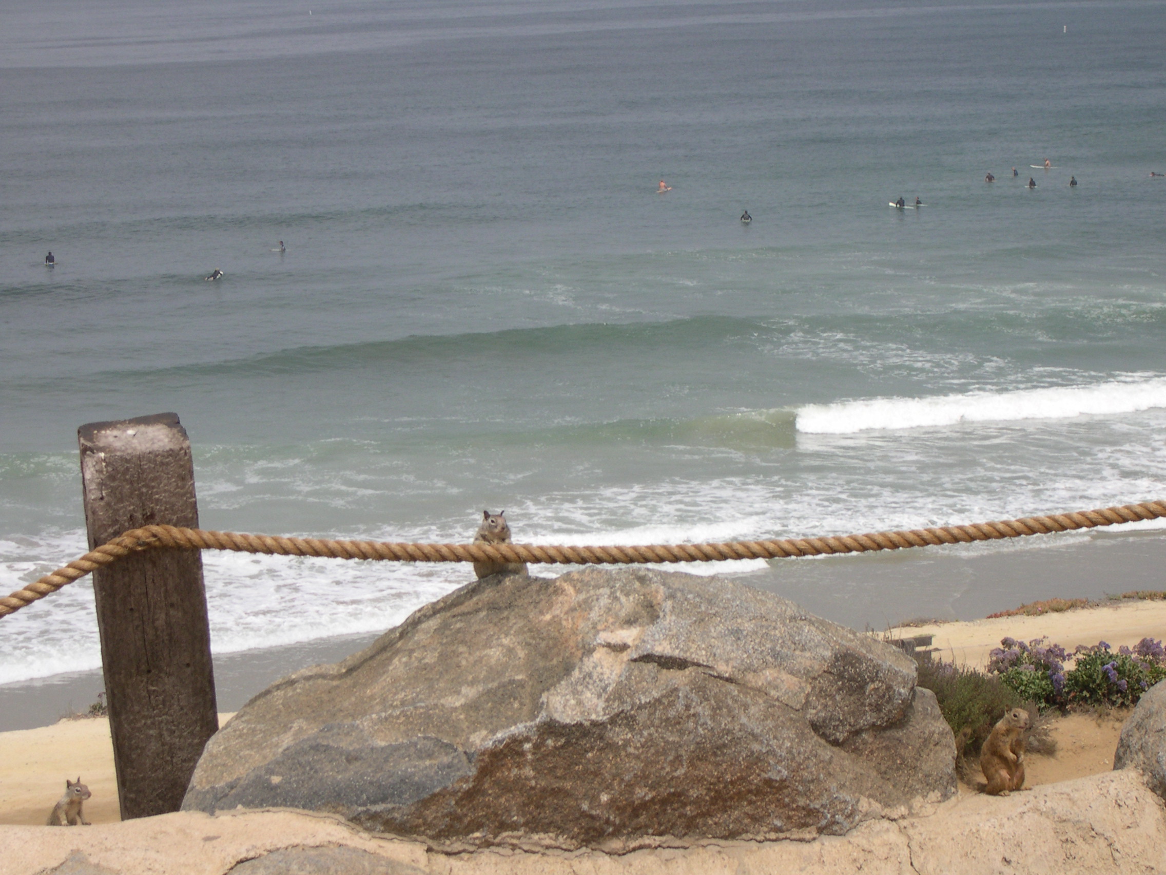 I was ridiculed for suggesting these creatures might be prairie dogs (one of three types of burrowing ground squirrels). A waiter from L'Auberge Del Mar suggested they were the meat in our Friday picnic meal of dim sum. Somehow, he received less ridicule than myself.