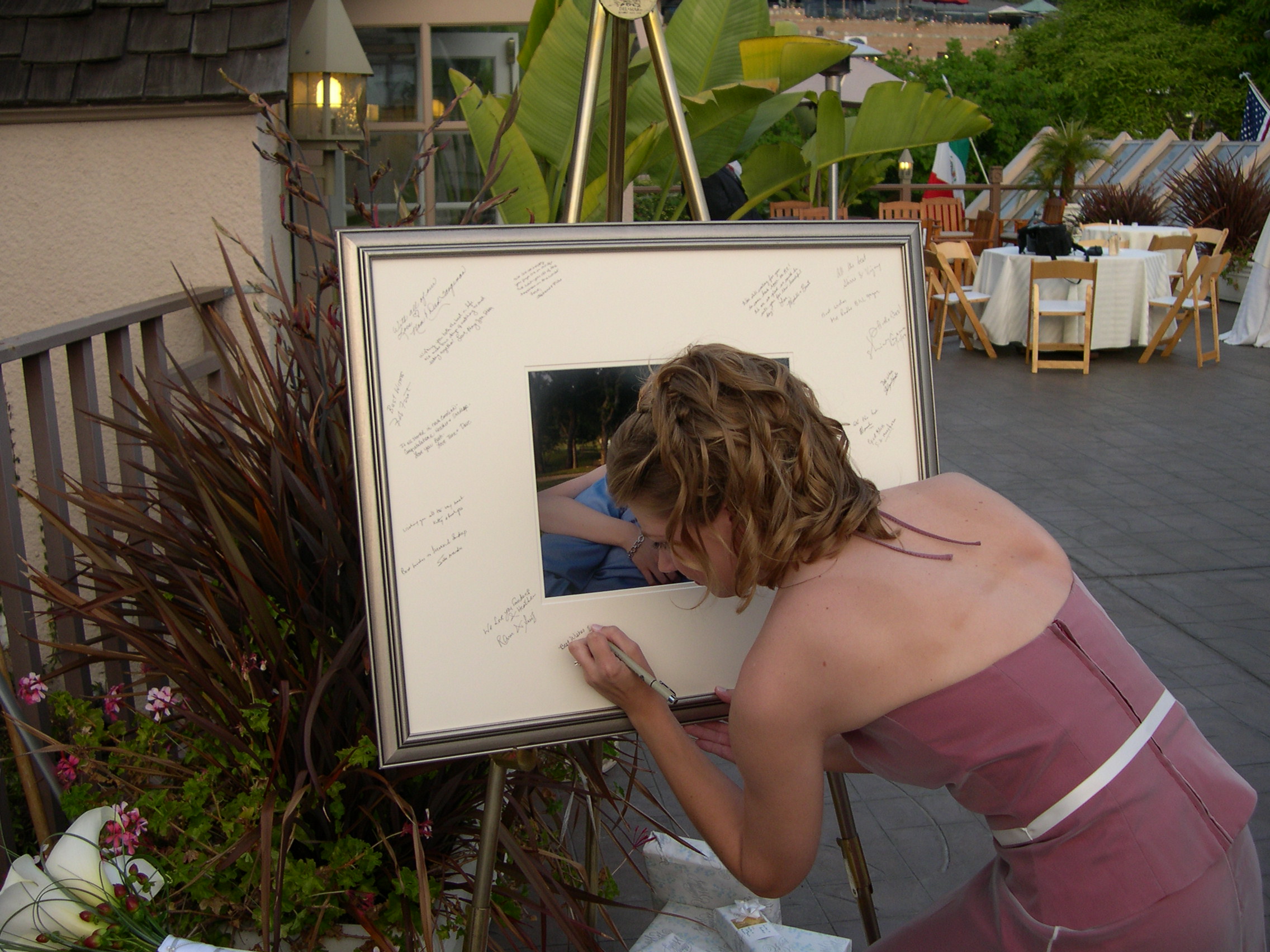 Stacey signs the couple's engagement photo.