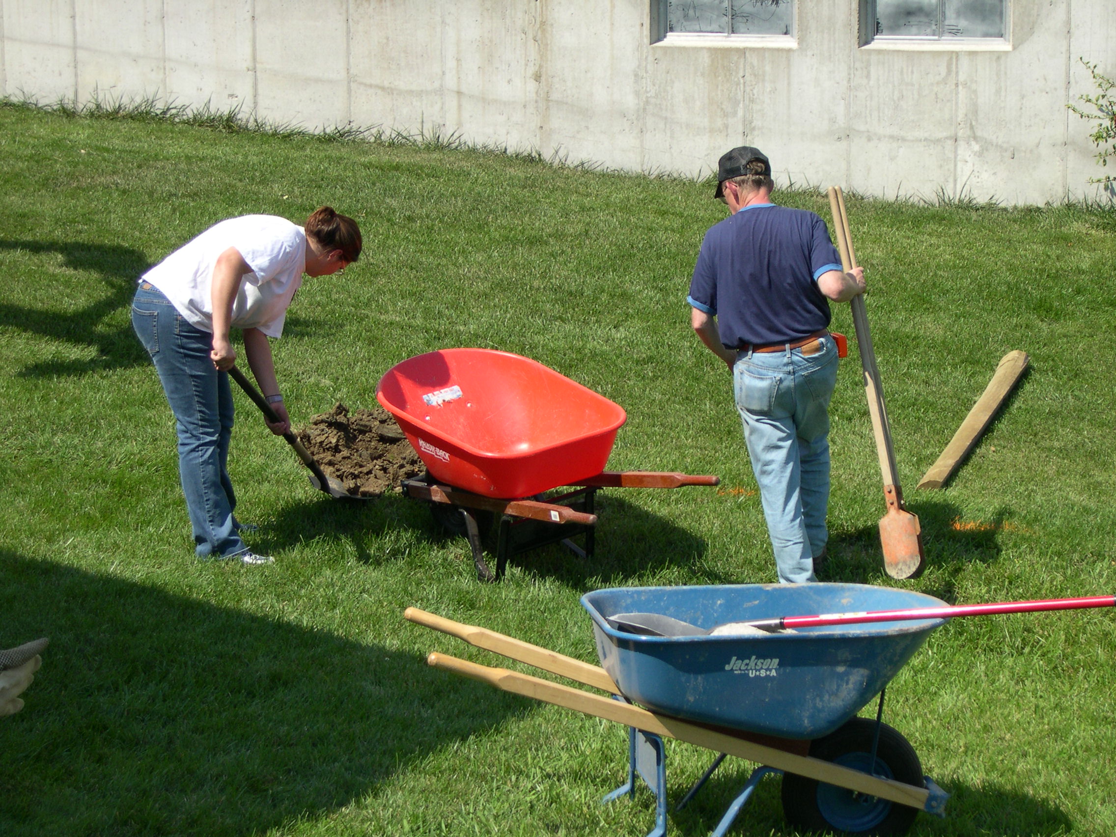 After a lunch break, work began on the fence on the other side of the yard. Katie and Stacey's Dad work to remove dirt from the post hole.