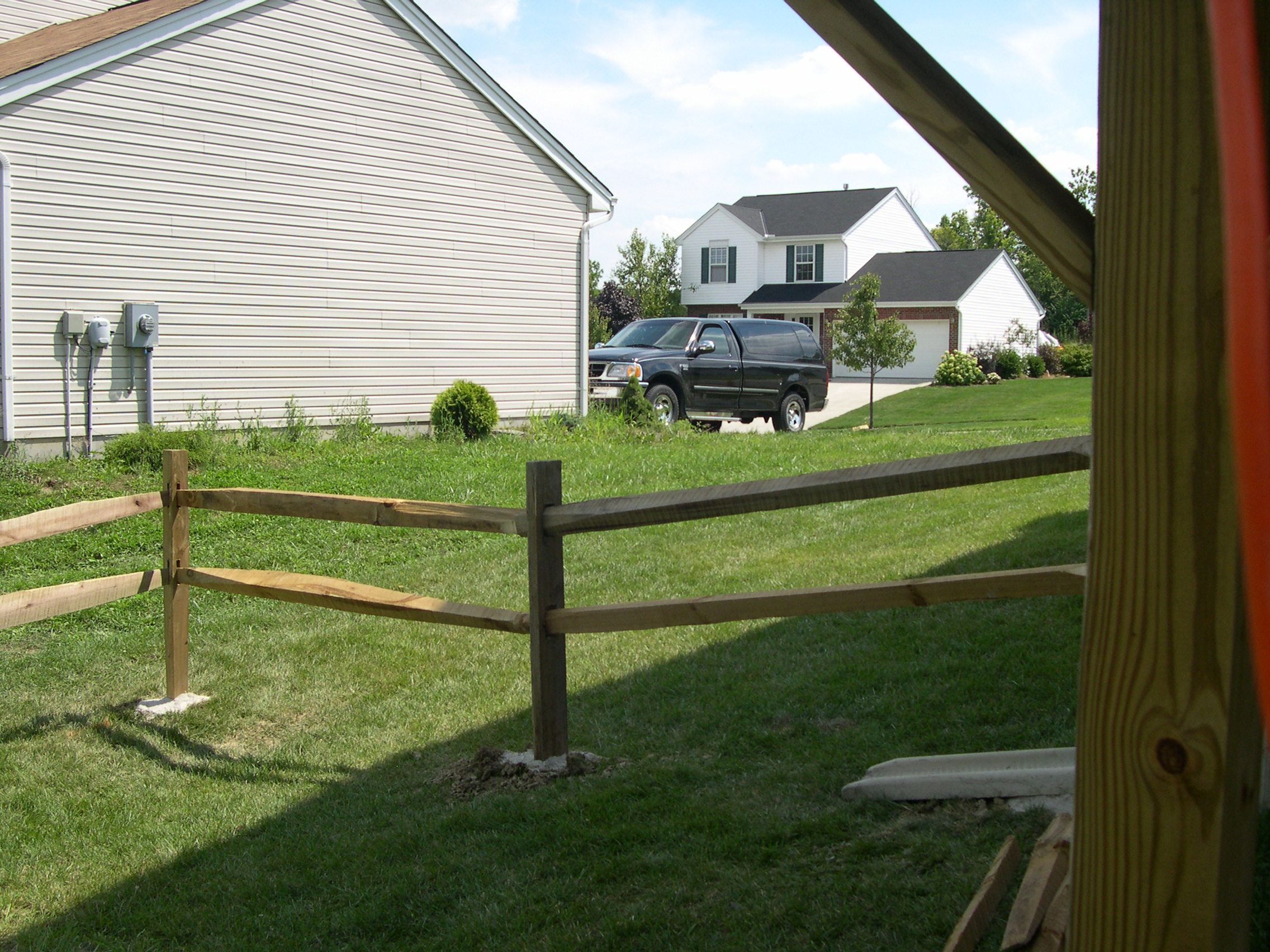 The corner of the fence where it attaches to the house (from underneath the deck).