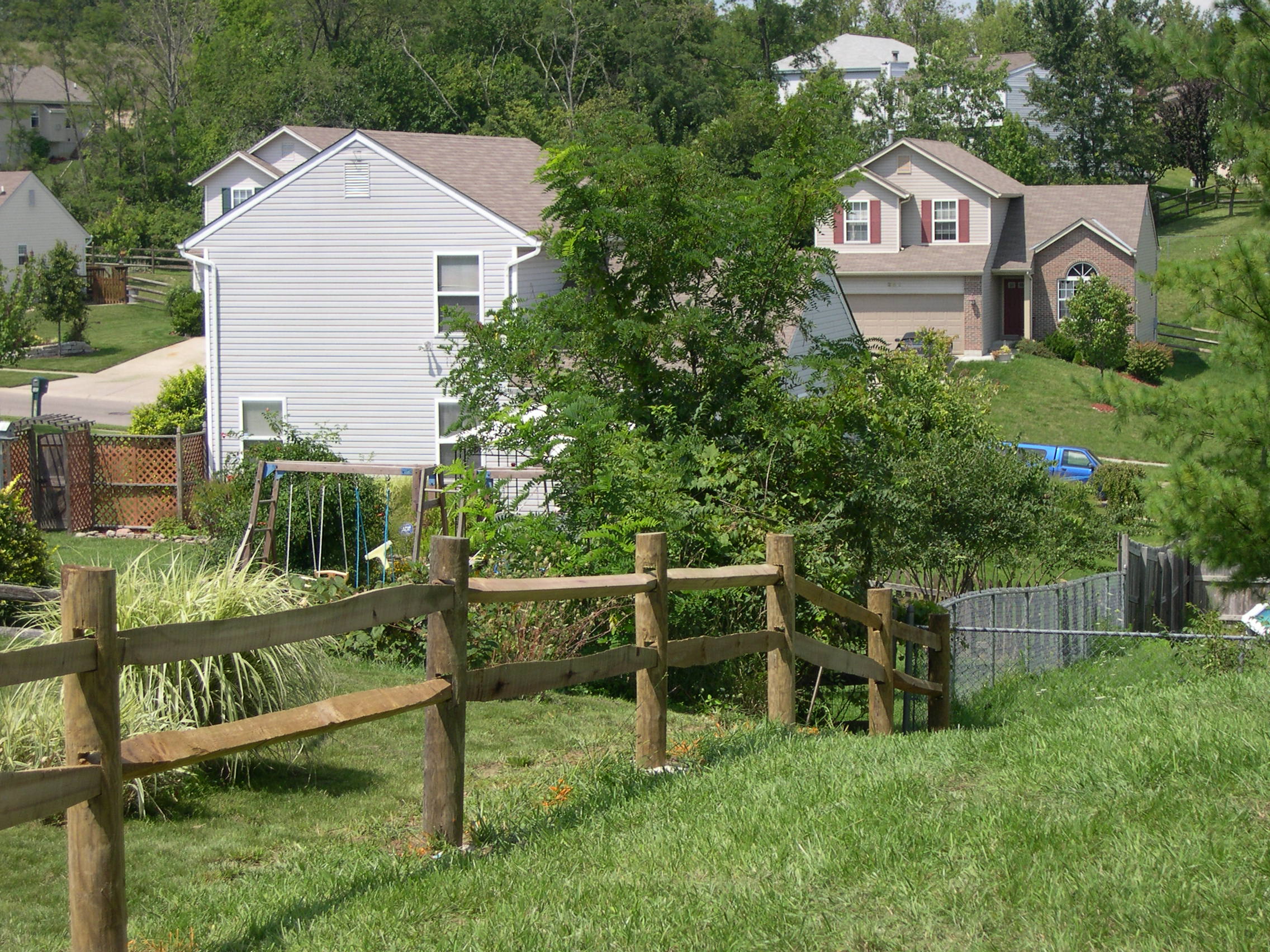 A long view of the fence on the other side of the yard