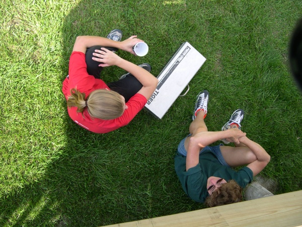 Stacey and her Mom take a break to admire the fence from underneath the deck.