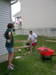 | The final section of fence is being installed as Stacey's Mom looks on. Viewed: 878 times.