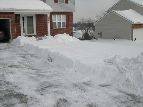 Shoveling and snowblowing left quite a deep pile of snow along the driveway.