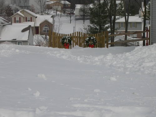 Stacey decorated our fence gates with wreaths which became snow-capped.
