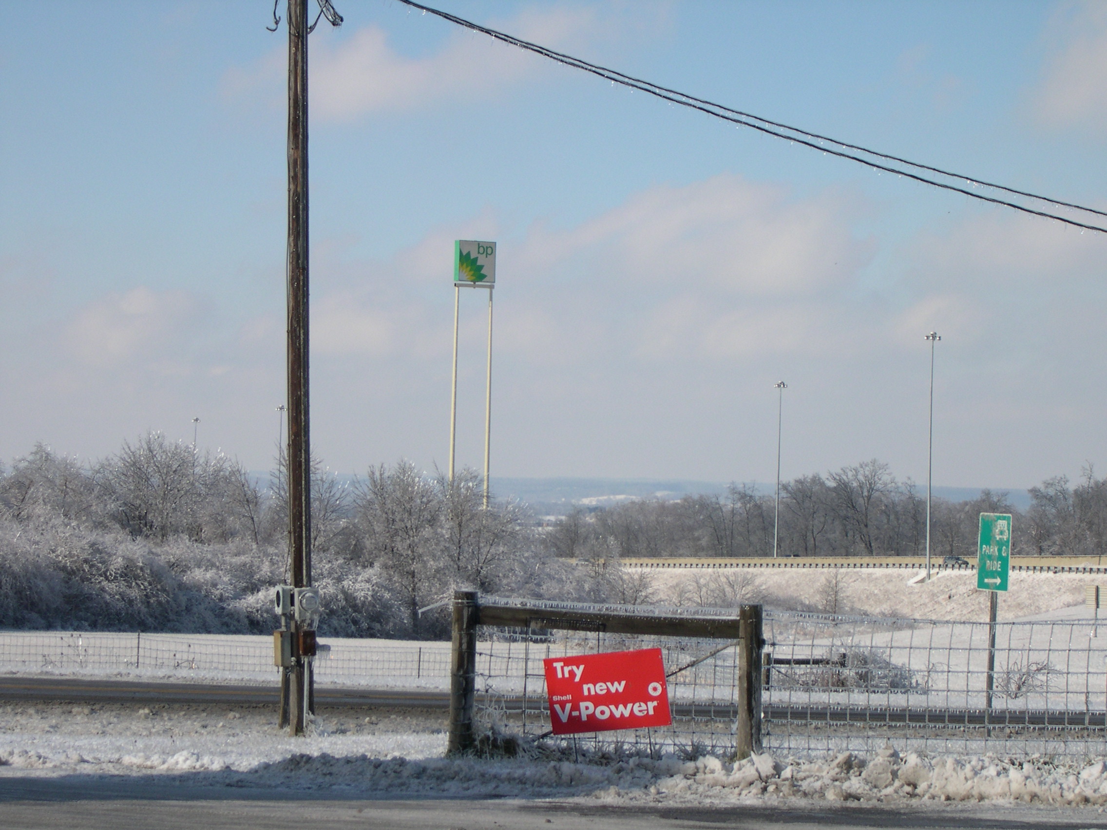 Driving back to Hamilton on Christmas Eve, we stopped for gas at a Shell station in Thornville, Ohio (just east of Columbus, Ohio along I-70). This is the icy view of the interstate.