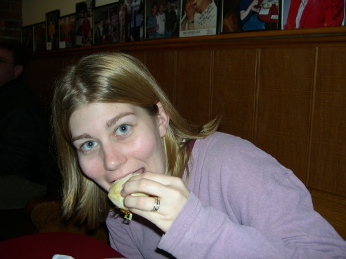 Stacey also tackled the Roethlis-burger. OK, she just piled on after I had to take a mid-sandwich rest break.