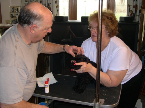 The glue is spread around the ear area.