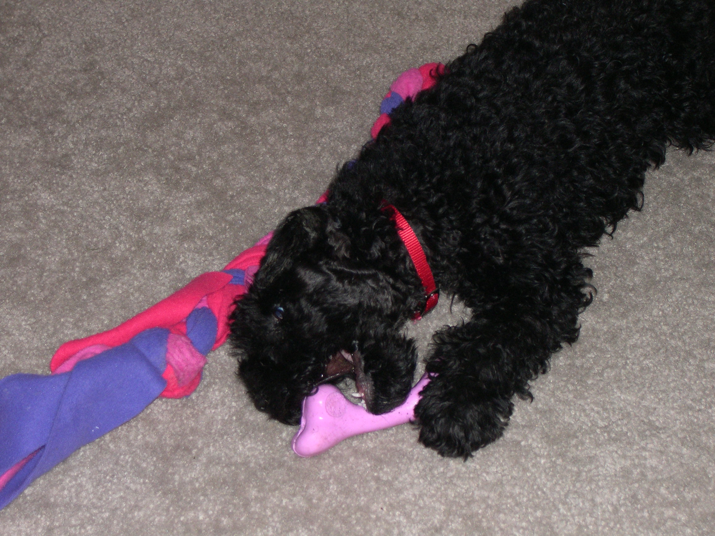 The Fleury loves to gnaw on her new bone.