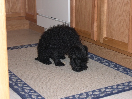 The Fleury devours her dog treat as her reward for good behavior during the bath.