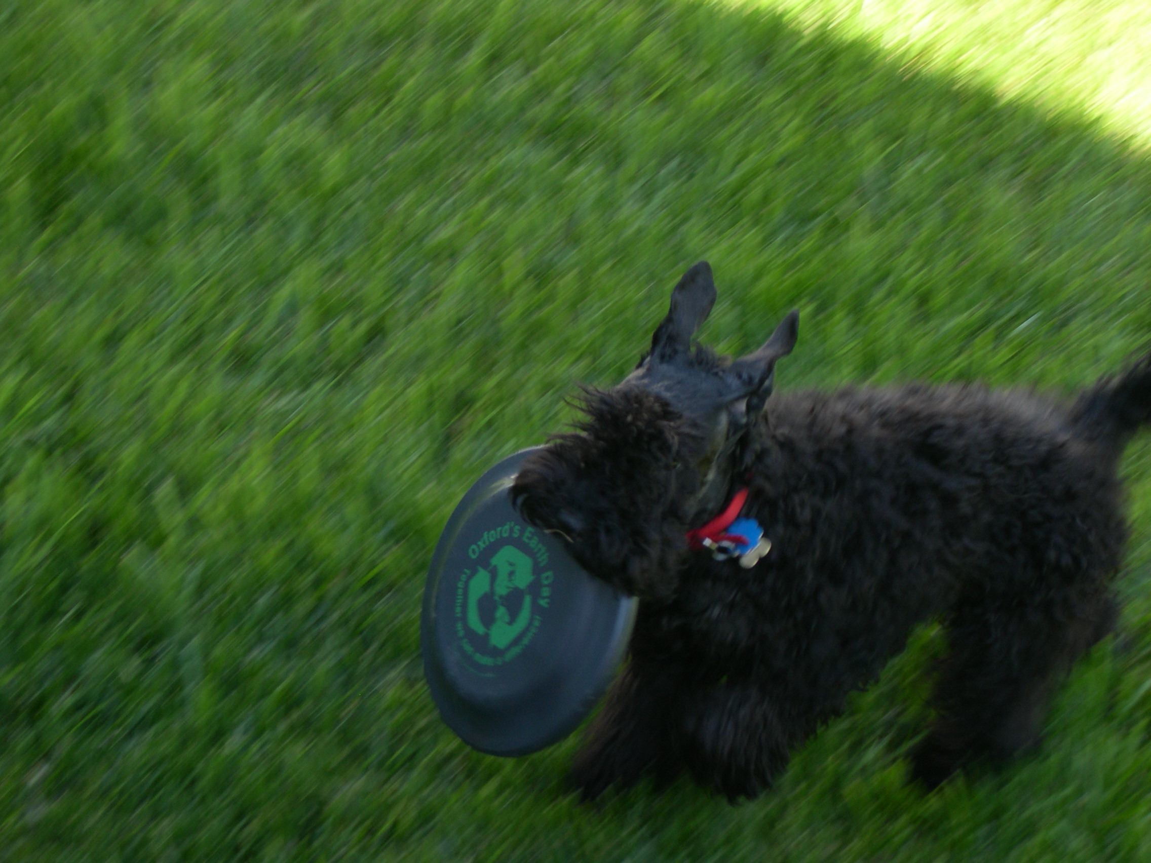 After many, many failed attempts, The Fleury finally learned how to pick the frisbee up with her mouth and when thrown, would fetch it and run it back.