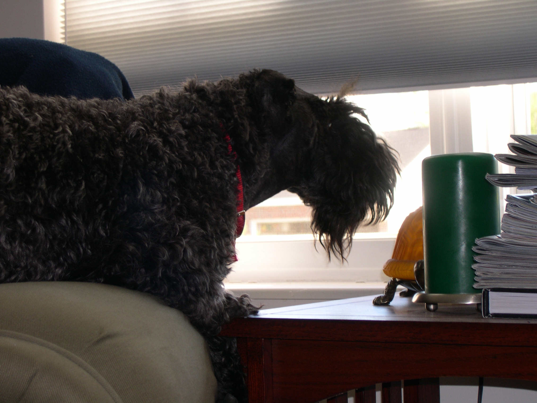 The following weekend (October 1st), The Fleury had to get her ears glued one final time. Later that afternoon, Stacey snapped some shots of The Fleury perched on the chair looking out the living room window.