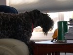 The following weekend (October 1st), The Fleury had to get her ears glued one final time. Later that afternoon, Stacey snapped some shots of The Fleury perched on the chair looking out the living room window. Viewed: 1079 times.