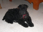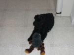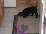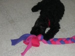One of her toys is a fleece rope which gets drug around the house quite often.