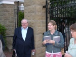Dad and Stacey hold everyone's things while people pose for pictures.