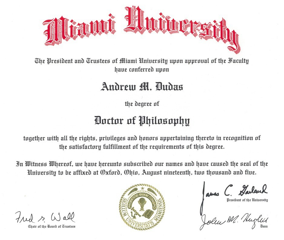 My diploma...As a funny aside, I did not actually receive my diploma at the ceremony (unlike the other Ph.D. graduates). Instead my diploma case contained a letter stating that I owed the University money and would not receive the diploma until my fees were cleared. I found that rather annoying and amusing since I am employed by the University which owed me money for working the first nineteen days of August. Ten days later, I was able to navigate the bureaucratic red tape of the University and received my actual diploma.