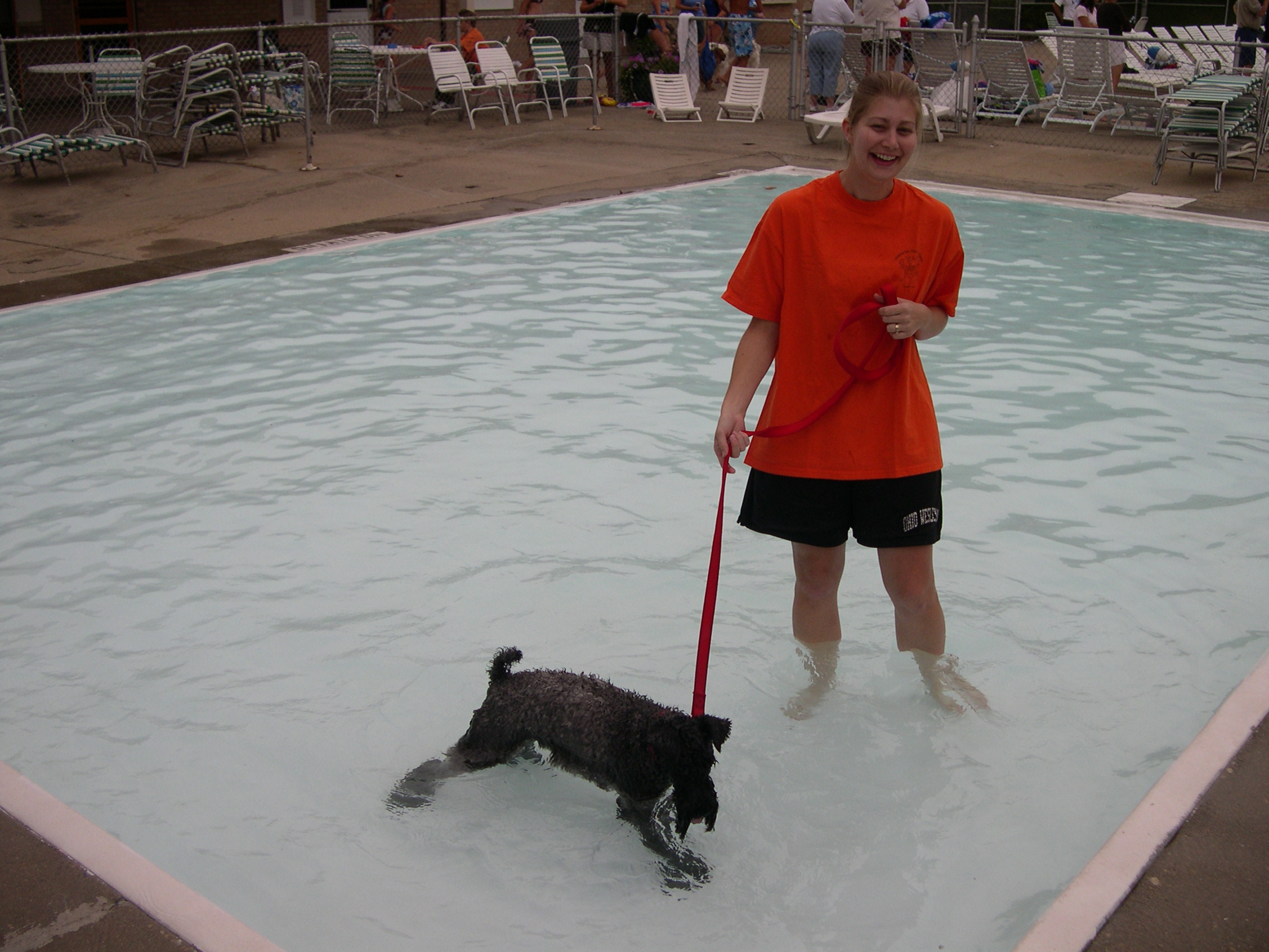 Realizing that The Fleury probably needed some time to practice her doggy paddle without the distractions of other dogs, Stacey took The Fleury into the kiddie pool.