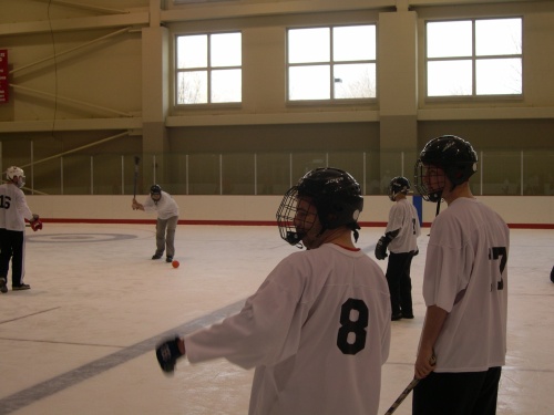 The Jimster and Mini-Me in the foreground during warm-ups; Petr takes a shot while Jess and Skip look on...